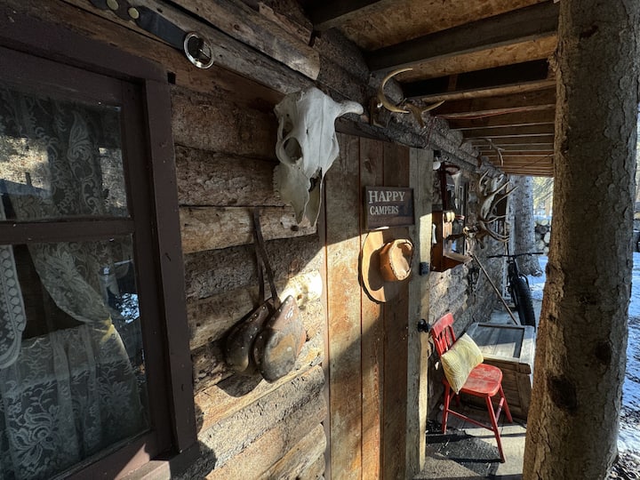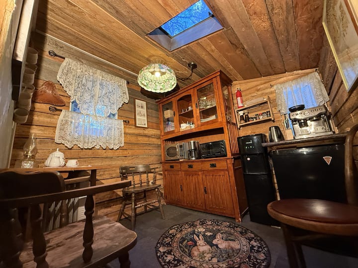 Hand-built in the 1980s, this authentic rustic cabin remains lovingly untouched, preserving its warm and inviting retro charm.
